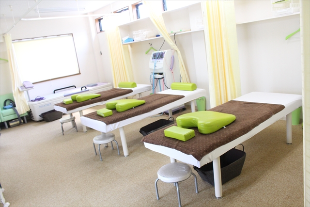 院内は、白を基調として清潔感があり、施術スペースはカーテンで仕切りをしていますので、ほかの方の目を気にすることなくゆったりとした気持ちで施術を受けていただけます。