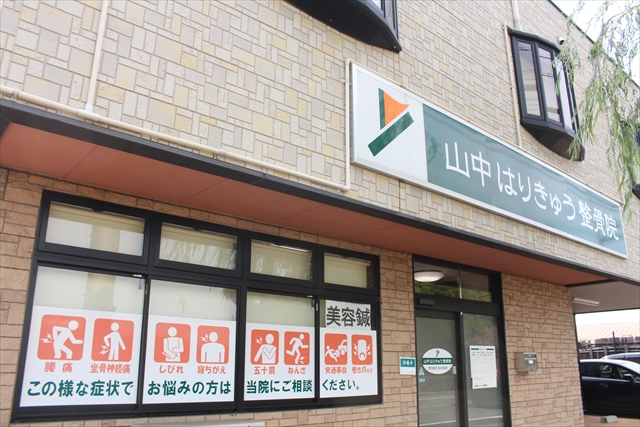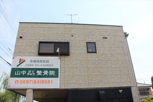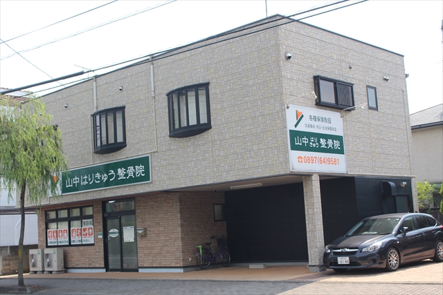 山中はりきゅう整骨院は、愛媛県西条市明屋敷にあり、広く開放的な医院となっています。